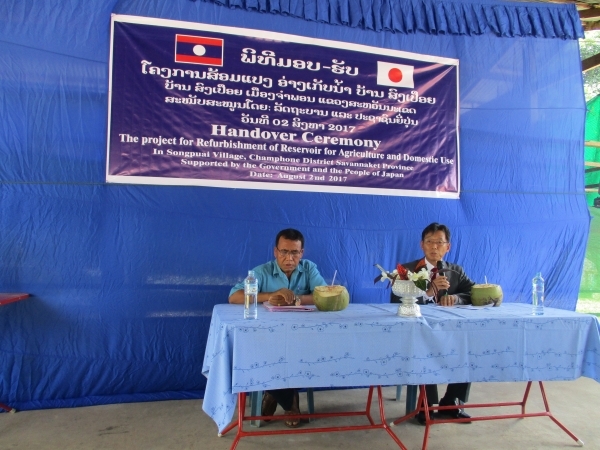 8月2日,サワナケート県チャンポン郡においてソンプアイ村生活・農業用貯水池の引渡式を行いました。引渡式には,引原大使が出席し,ラオス側は,シスワン・チャンポン郡副郡長及び関係者・地域住民が出席しました。