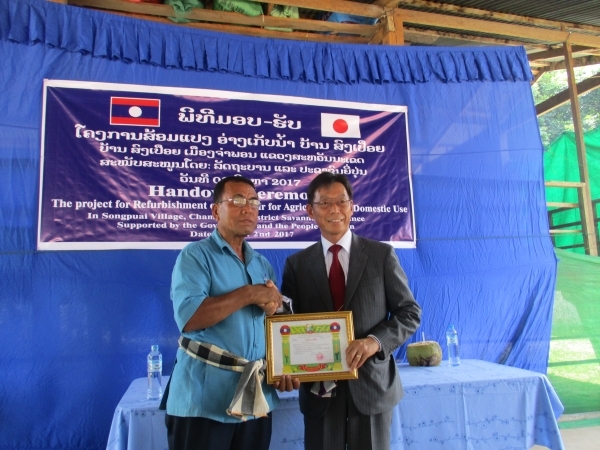 サワナケート県ソンプアイ村生活・農業用貯水池改修計画引渡式