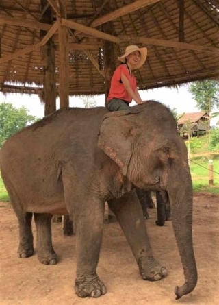 ຂີ່ຊ້າງຢູ່ແຂວງໄຊຍະບຸລີ サイニャブリ県で象に乗りました